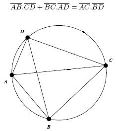 Este teorema confirma que num quadrilátero qualquer inscrito numa circunferência, a soma dos produtos dos lados opostos é igual ao produto das diagonais.