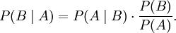 O teorema de Bayes relaciona as probabilidades de A e B com as respectivas probabilidades condicionadas mútuas.