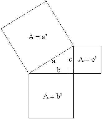 O Teorema de Pitágoras afirma que num triângulo rectângulo, o quadrado da hipotenusa é igual à soma dos quadrados dos catetos. Este facto confirma-se porque a área do quadrado construído sobre a hipotenusa é igual à soma das áreas dos quadrados construídos sobre os catetos.